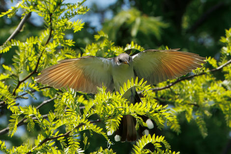 The Yellow-billed Cuckoo is the chill, elusive ghost of the forest, known more by its croaky, rainy-day call than by sight. It’s got a long, sleek tail and a bright yellow bill, perfect for snagging caterpillars—including the hairy ones most birds avoid. A master of camouflage and surprise appearances, this bird is basically the smooth jazz of summer forests.