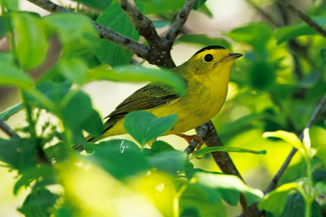 Wilson’s Warbler is a bright yellow fluffball with a sleek little black cap, giving it a dapper, detective-in-disguise look. It zips around low shrubs and branches, always busy, always curious, and always adorable. With a cheerful chirp and boundless energy, it’s like a feathered ray of sunshine bouncing through the greenery.