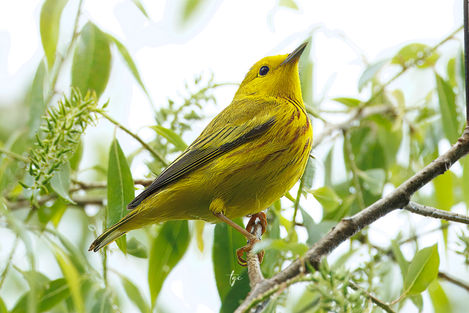 The Yellow Warbler is a joyful burst of sunshine, covered in glowing yellow feathers with red streaks like it’s been scribbled on with crayons. Its sweet “sweet-sweet-sweet-I’m-so-sweet” song is as cheerful as its looks. Always on the move, it flits through shrubs and trees, bringing energy and charm to every branch it visits.